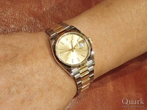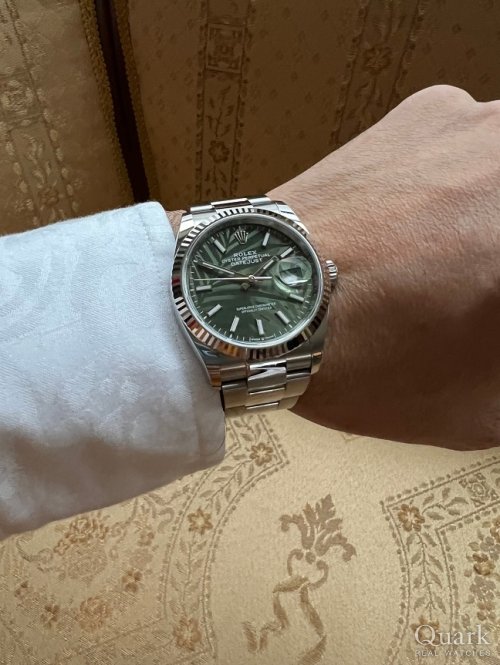 今回は2021年の新作となるデイトジャスト グリーンパームモチーフを購入しました!杉崎さんよりメールで案内を受けてから5分で即決。杉崎さんは趣味性をよく理解していてくれ、かつ投資効率まで考えてスピーディーに案内を頂けるので毎回気持ちよく購入しています。現物を見ずの購入も品質絶対安心のクォークさんならではですね。