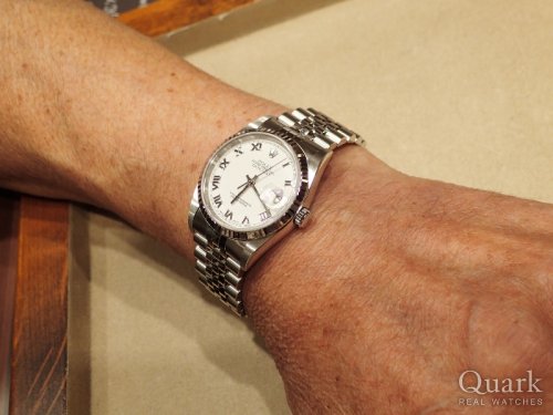 この度は当店にてデイトジャストを購入頂き、誠にありがとうございました。オイスターブレスとフルーテッドベゼルの組合せがお洒落な時計ですが、更にスレートローマンのダイヤルとの組み合わせで、本当に素敵な時計であったと思います。末永くお使い頂ければ幸いです。今後とも時計を通じた末永いお付き合いの程、宜しくお願い申し上げます。