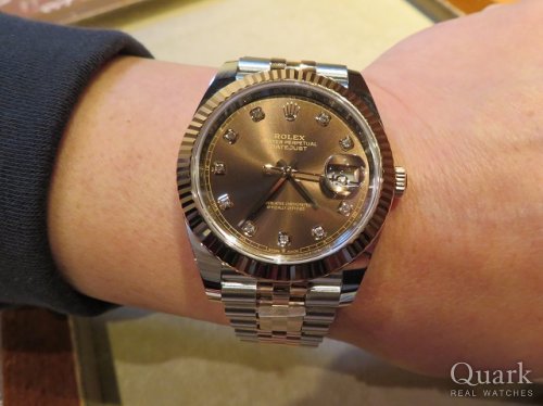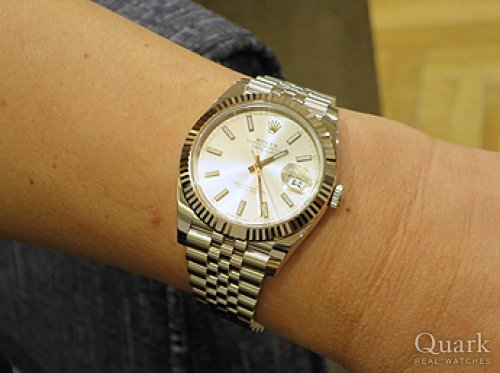 E様、この度はクォーク梅田店をご利用頂きまして誠に有難うございました。ご購入頂きました Ref.126300(スレートローマ)は、2017年から生産されているオールSS仕様のデイトジャストです。サイズも41ミリと存在感がありつつ厚みなどは抑えた作りでとてもスマートです。何よりこのデザインが最高にお洒落ですよね。様々なシーンでお使い頂けますし、E様にとてもお似合いでございました。末永くご愛用頂けましたら幸いです。今後もご指名頂けますようしっかりとサポートをさせて頂きます。何かご要望などございましたら、私井内までお気軽にお申し付けくださいませ。また、ブレスレットの洗浄及び調整も無料で行っておりますので、お近くに来られた際には是非共遊びにいらして下さい。心よりお待ち致しております。 クォーク梅田店 井内