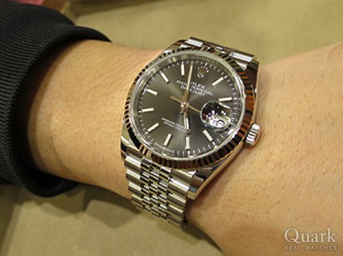 O様 この度クォーク名古屋店をご利用頂き、誠にありがとう御座います。入荷までにお時間を頂いてしまいましたが、やっと念願の御時計になりましたね。本当にお待たせしました。2019年の新型モデル DATE JUST36 Ref.126234は、最新のムーブメントを搭載するなど、従来と比べ実用性も高くなっております。ロレックスらしい高級感に溢れるデザインとなっており、これから年を重ねても末永くご愛用頂けると存じます。36mmのサイズ感もO様にバッチリお似合いでした。O様に末永くご愛用頂けます様、私もサポートさせて頂きますので、ご相談などが御座いましたら、お気軽にお申し付け下さいませ。栄にお越しの際は、ブレス洗浄を兼ねて、お気軽に遊びにいらして下さいね。またO様にお会い出来る日を楽しみにしております。