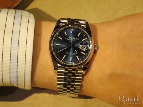 N様 この度は数ある時計店からクォーク上野本店をご利用いただき誠にありがとうございます。今回、ご購入頂きましたDATEJUST Ref.126200 ブルーはCal.3235を搭載しており、従来の約2倍となる70時間ロングパワーリザーブを誇ります。落ち着きのあるブルーの文字盤にオシャレなジュビリーブレスが魅力的です。ブレスレットの洗浄及び調整も無料で行っておりますので、お近くにお越しの際は遊びにいらしてください。是非永くご愛用いただければ幸いです。お使いいただく上で何かご不明な点等ございましたら、また林までご相談ください。今後とも末永いお付き合いの程よろしくお願いいたします。