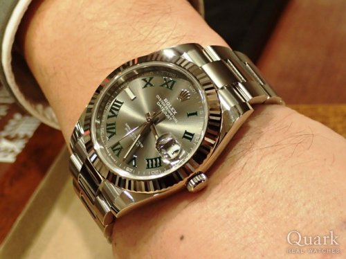 元々、親がデイトジャストのブルーローマを着けていて興味を持ちました。高級感のあるジュビリーブレスに黒文字盤、これしか決めていませんでした。