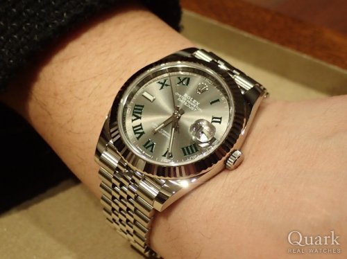 S様 この度はクォーク銀座888店をご利用頂きまして、誠にありがとうございます。今回お選びになられた「DATE JUST 41 Ref.126334」は、ドレスウォッチとしては大きめの41mmケースに、白文字盤とローマ数字インデックスのコントラストがクリーンな印象の一本です。既にお持ちのエクスプローラーⅠとはまた異なる、ロレックスらしいフォーマル感に溢れるモデルですので、オンオフを問わずご愛用頂ければ幸いです。