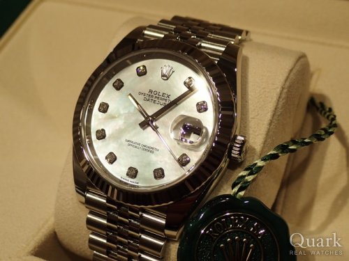 O様 この度はクォーク仙台店をご利用くださいまして誠にありがとうございます。ようやく皆様のロレックスがそろいましたね!!お時間をいただき大変失礼いたしました。本当はO様が一番早くご検討されていらっしゃったと知ったときにはちょっと驚きました。そう知ってしまいますと、K様が一番早くGETされたことがまた不思議な感じになりますね(笑)。DATEJUST41は、パワーリザーヴも長くなり、使いやすくなりました。お仕事でもプライベートでもたくさんご愛用いただき、O様のお気に入りの一本として大切にしていただけましたら幸甚に存じます。皆様のロレックスライフが素晴らしいお時間として続いていきますよう、これからもお手伝いいたしますので、気になることがございましたらどんな小さなことでも構いませんので、いつでもご相談くださいませ。そしてまたロレックスファンが増えそうになりましたら全力でお探しいたしますので、ご安心くださいませ(笑)!!店頭にてサイズ調整、ブレス洗浄を無料で承っておりますので、お休みの日でも、お仕事中でも(笑)、またお店に遊びにきてください。それでは今後とも末永いお付き合いのほどよろしくお願い申し上げます。
