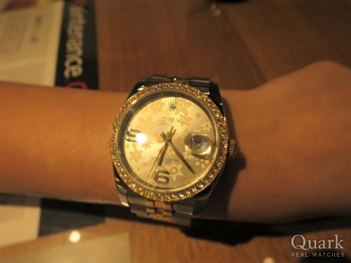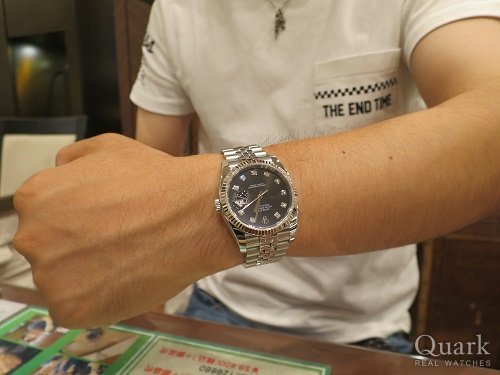 ゴールドのコンビにしようと思い気分転換がてら思い切ってデイトナにしようと思ったけど・・シャンパンダイヤルを見て即購入を決めました!いずれ文字盤をダイヤ入りに交換しようと考えています。 パルコで1本、天地下で1本、次の店舗出来たらそこでも買います!ロレックス買うならクォークでしょ!!