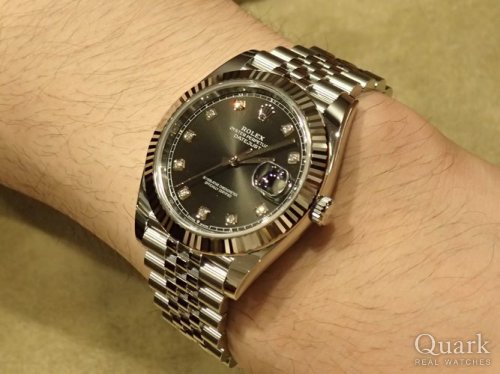 K様、この度はクォークなんば店をご利用頂きまして、誠に有難うございます。今回ご購入して頂いたデイトジャストRef.126303Gは黒文字盤にダイヤが付いて、高級感がありながら、華やかな雰囲気を演出してくれます。K様にとてもお似合いでございました。流通の数がかなり少ないモデルですが、タイミングよくご紹介でき本当に良かったです。ご購入のお手伝いが出来て、私も嬉しく感じております。末永くご愛用頂けましたら幸いです。また今後とも何かございましたら私までお気軽にご相談下さいませ。これからもクォークなんば店をどうぞ宜しくお願い致します。クォークなんば店 姜
