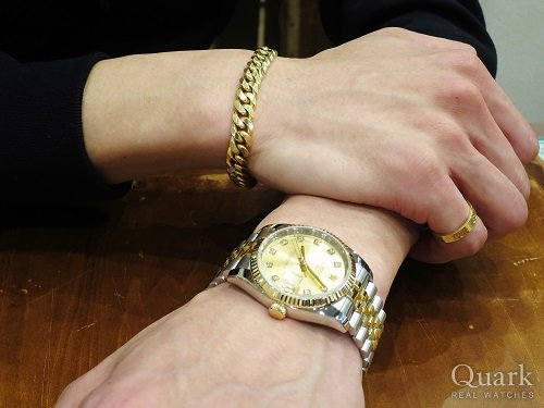 F様 いつもクォーク名古屋店を御利用頂き、誠にありがとうございます。Ref.17000はロレックスとしては珍しいクォーツタイプの御時計になります。自動巻きのデイトジャストとは一味違ったブレスデザインなど、他と差別化出来る要素を持ちあわせておりますので、フォーマルシーンで楽しんで頂ければ幸いです。他の御時計同様、しっかりサポートに努めさせて頂きますので、何か気になる事が御座いましたら、遠慮無く御相談下さい。