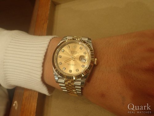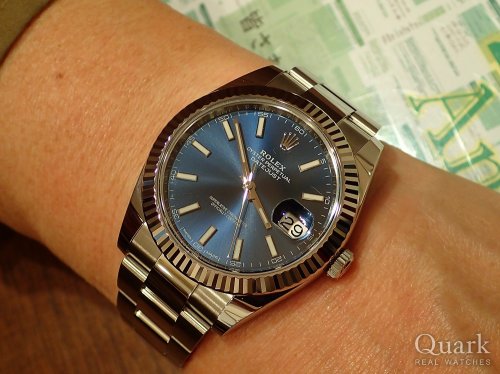 友達がスポーツモデルを持っていて自分はデイトジャスト系にしようと決めていた、ふらっと立ち寄ると自分が好きな青色のモデルがあったのでこれに決めました!