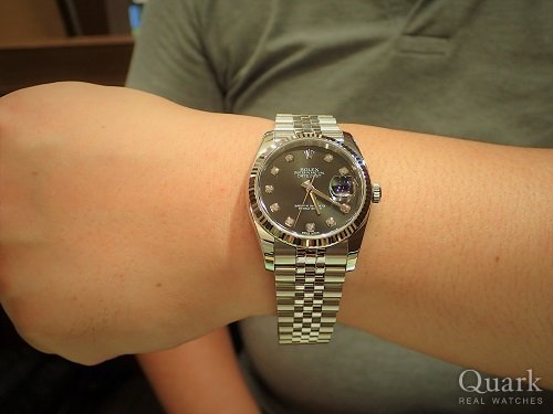 いつもクォーク横浜店をご愛顧賜り誠にありがとうございます。コンシールドタイプのジュビリーブレスは、非常に人気の高かったデザインだけに生産がお待ってしまったのは残念ですね。生産は終わってしまいましたが、今後もこのブレスレットのデザイン性の高さは語り継がれていくと思います。ピンクゴールドのデイトジャストのお話しをいただいておりましたが、もともと流通が少ないだけに、好みにピッタリと合うデザインが見つかりづらいですよね。しかしながら上品に輝く10ポイントのダイヤモンドの程良い高級感のこちらのデイトジャストは、実用性も高いと思いますので、沢山使ってくださいね。 いつもありがとうございます。今後ともよろしくお願いいたします。 クォーク横浜店 長本