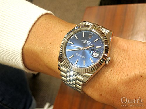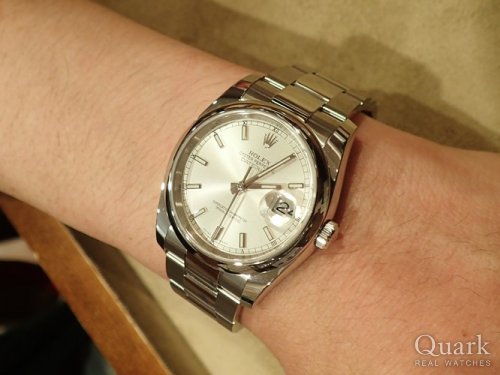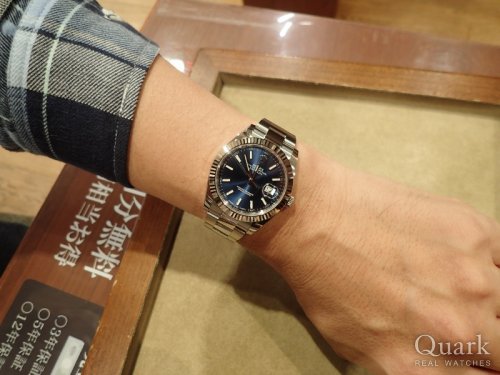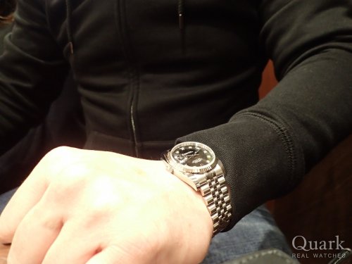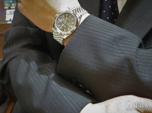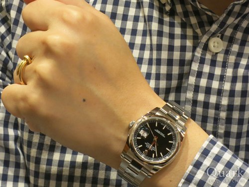 今回、知人に紹介されたクォークさんで購入致しました。このモデルを選んだ理由は末永く使うのに最適な上品な時計であるということと、妻がデイトジャストの黒文字盤を既に所有しており、それとお揃いとなる時計が欲しかった為です。