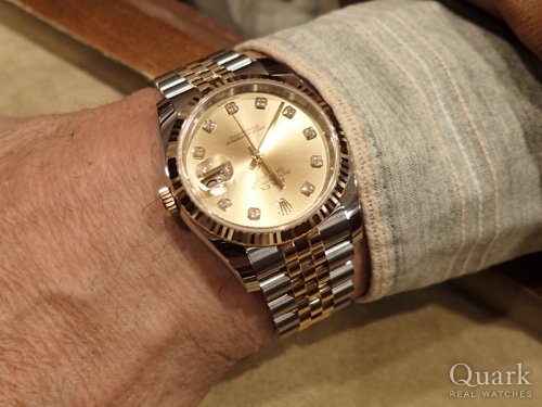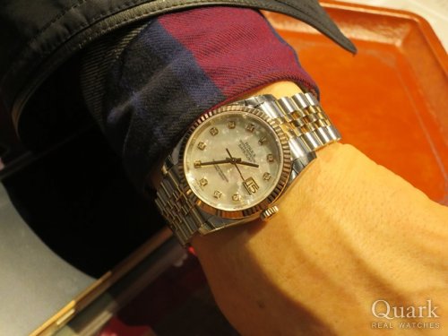 W様 この度はクォーク仙台店をご利用くださいまして誠にありがとうございます。36ミリケースの丁度良いサイズ感のデイトジャストは、W様の腕にピッタリでございます。また、高級感あるシャンパンダイヤルと、豪華なダイヤモンドの組み合わせは、ロレックスを代表する素晴らしいデザインでございます。きっと様々な場面で活躍してくれることと存じます。今後はメンテナンス等でしっかり対応いたしますので、末長いお付き合いのほど、何卒よろしくお願い申し上げます。 クォーク仙台店 古賀