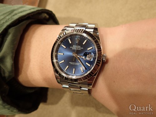 M様、いつもクォーク上野本店をご利用頂きまして誠に有難うございます。今回もご縁があり、M様とお会いすることが出来て私も心より嬉しく思っております。お選びいただきましたRef.126300の青文字盤は、現在も尚流通量が少ないモデルでございます。デザインはもちろん機能面においても最新の仕様となっておりますので、ご堪能いただければ幸いでございます。これからご使用されていくなかでご不明な点等ございましたら、私(寺田)までご相談下さいませ。今後とも宜しくお願い申し上げます。