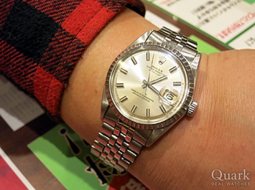 S様、この度はクォーク神戸店をご利用頂きまして誠に有難うございました。ご購入頂きましたデイトジャストは、1945年登場以来ロレックスの定番となり今尚幅広い年齢層から支持されています。その中でもこのSS+WGコンビはとても人気で、特にお選び頂いたシルバー文字盤はシンプルで派手過ぎず統一感がありとても綺麗です。S様の腕元で輝いておりました。末永くご愛用頂けましたら幸いです。今後もご指名頂けるようしっかりとサポートさせて頂きますので、何かご要望などございましたら私井内までお申し付け下さいませ。また、ブレスレットの洗浄及び調整も無料で行っておりますので、お近くに来られた際には是非遊びにいらして下さい。心よりお待ちしております。                    クォーク神戸店 井内