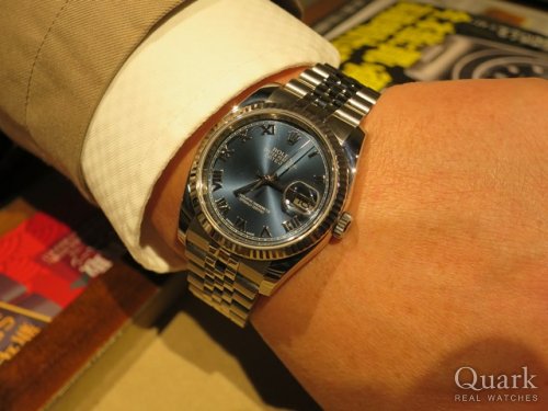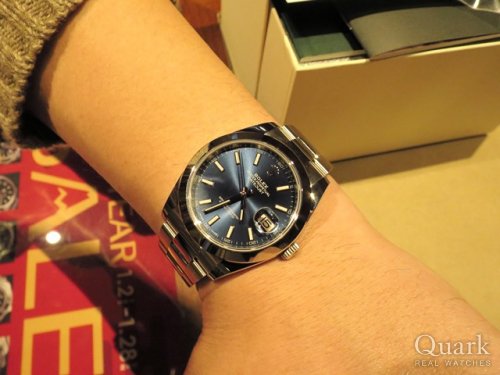 I様 いつもクォ―ク上野本店をご利用頂き誠にありがとうございます。本年も宜しくお願いいたします。今回はデイトジャスト Ref.116234ブルーローマのご購入のお手伝いが出来た事、大変嬉しく思います。ロレックスの定番モデルとして人気の高いデイトジャストでビジネスシーンでご使用頂いている方が多く、またプライベートでも違和感なくご使用頂ける事も人気の一つです。現在、お持ちの青サブとは少し違ったブルーの文字盤がまた違う楽しみを感じて頂けると思います。ご使用頂きしっかりとサポートさせて頂きますのでまた、お時計の事で何かございましたらお気軽にご相談下さいませ。また東京に来られた際は遊びにいらして下さい。宜しくお願いいたします。
