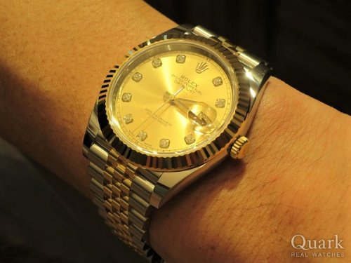 W様 この度はクォーク仙台店をご利用くださいまして誠にありがとうございます。スタンダードモデルの王道デイトジャスト。イエローゴールドコンビ×シャンパンダイヤルの組み合わせは、何年経っても魅力的なデザインでございます。また、高級感をさらに引き立たせる10個のダイヤモンドは、デイトジャストの魅力を十分にお楽しみ頂けることと存じます。お時計好きなW様のコレクション、コーディネートとして長くご愛用頂けますね! メンテナンス等におきましては、今後もしっかり対応いたしますので、いつでもお気軽にお申し付けくださいませ。どうぞよろしくお願いいたします。 クォーク仙台店 古賀