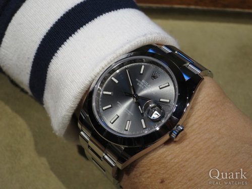 S様 この度はクォーク梅田店をご利用頂きまして誠に有難うございます。この度お選び頂いたデイトジャスト41 Ref.126334 シルバーは、バーゼルワールド2017で発表されたばかりの新作モデルです。Ref.126334は、新型キャリバーcal.3235を搭載しており、パワーリザーブが約70時間まで延長されたほか、カレンダーの変更が24時間可能になっているなど魅力が満載です。デザインにつきましても、従来の41ミリのデイトジャストにはなかった5連ブレスを採用しておりますので、高級感も感じて頂けるかと存じます。今後とも安心してご使用頂けるよう努めて参りますので、是非末永くご愛用くださいませ。又のご来店を心よりお待ち致しております。 クォーク梅田店 川田