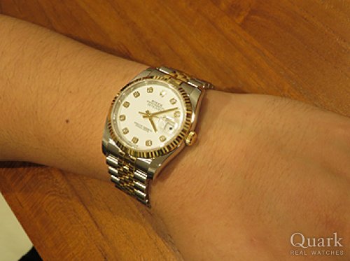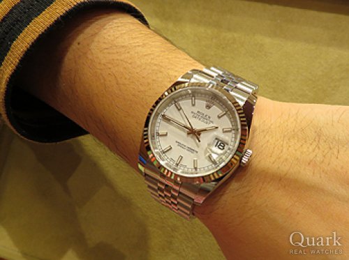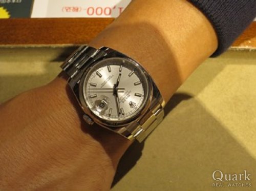 N様、この度はクォーク上野本店をご利用頂き誠に有難うございます。ご縁もあり、N様へご希望のモデルをご案内する事ができ、私も嬉しく思います。今回ご案内したモデルは、従来の36ミリケースならではのフィット感とシルバー文字盤がデイトジャストらしい上品な印象を引き立たせますね。末永くお使いいただけましたら幸いでございます。またお近くにいらした際は上野本店にお立ち寄りくださいませ。今後とも宜しくお願い申し上げます。  クォーク上野本店 寺田