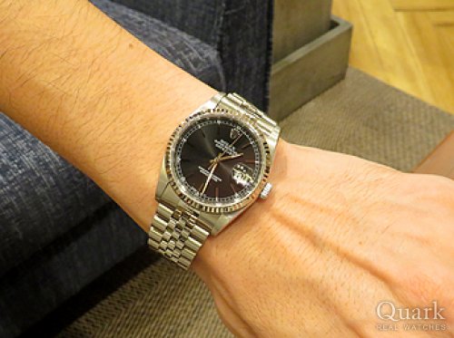 Y様 この度はクォーク名古屋店をご利用頂き、誠にありがとう御座います。憧れのロレックスのご購入に私も携われると事が出来、とても嬉しく思います。現行モデルとは異なったシャープさのある形状やインデックスが旧型モデルの魅力ですね。大型なサイズや重量感が今では主流となっていますが、お選び頂いたデイトジャストの腕に着けた時の軽さは、本来の腕時計らしさを感じられると思います。シンプルながらもロレックスらしい高級感のあるデザインとなりますので、これから末永くご愛用頂けると存じます。ご使用される中で、ご不明な点などが御座いましたら、お気軽に私までご連絡下さいませ。ご遠方では御座いますが、栄にお越しの際は、お気軽に遊びにいらして下さい。またY様ご夫婦にお会い出来る日を楽しみにしております。