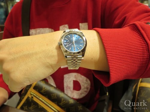 F様 この度は、私共クォークをご利用頂きまして誠に有難う御座います。Ref.126334(青文字盤)は、入荷数が少なく、とてもタイミング良くご検討いただけたと思います。爽やかな青文字盤とジュビリーブレスが、F様のお腕元にとてもお似合いでございました。お仕事やプライベート等で存分に楽しんでいただけると思います。奥様のお時計も、私を含めクォーク横浜店スタッフ全員で対応させていただきますので、お気軽にお問い合わせ下さい!!今後とも末永いお付き合いの程、宜しくお願い申し上げます。クォーク横浜店 杉野