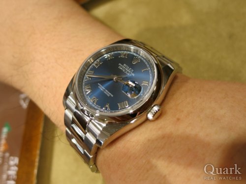 これまで、デイト表示の無いオイスター・パーペチュアルを使っていましたが、日付の必要性を感じていた為、デイトジャストへの買い替えを検討していました。好きな色のブルーと、デイト表示付き、ローマ数字のインデックスという条件で探していたところ、デイトジャストRef.116200・ブルーローマのデザインが格好良く、こちらのモデルを選びました。