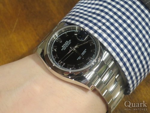O様 この度はクォーク名古屋店をご利用頂き、誠にありがとう御座います。存在感のあるデイトジャストIIとも悩まれましたが、腕に収まりの良い36mmサイズは、場所を選ぶ事無く幅広いシーンでご活躍頂けると思います。末永くご愛用頂くのにサイズ感は非常に大事ですね。グレーローマの上品な色合いは、O様の雰囲気にとてもお似合いでいらっしゃました。お使い頂く中で、ご不明な点等が御座いましたら、いつでもご連絡下さいませ。あまり栄には来られないとの事でしたが、これを機に、当店が栄までお越しになるきっかけとなれば、嬉しい限りです。その際は、お声掛けて下さいね!またO様ご夫婦にお会い出来る日を楽しみにしております。