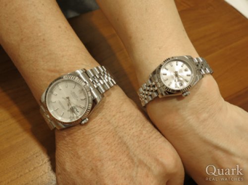N様 この度はクォーク梅田店をご利用頂きまして、誠にありがとうございます。ご夫婦の大切な記念の時計のご購入に当店をお選び頂き、大変光栄でございます。お選び頂きましたデイトジャストは上品でシンプルな時計であり、ロレックスにおいて長く愛されているモデルでもございます。10Pのダイヤはさりげないアクセントとなっており、シンプルな時計だからこそ通常の文字盤とは異なる雰囲気を感じて頂けるかと存じます。素材違いではございますが、N様ご夫婦の雰囲気にピッタリのペアだと思います。末永くご愛用頂けましたら幸いでございます。ご愛用の中で何かございましたらお気軽にご連絡下さい。今後ともご購入頂きました時計と併せて、クォーク梅田店もよろしくお願い申し上げます。