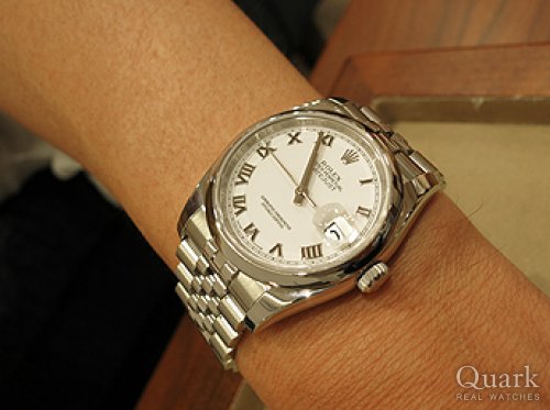 今スポーツモデルのEX-Iを所有しているので、違うタイプのモデルで検討し、フォーマルにも使えるデイトジャストを選びました。色もEX-Iが黒文字盤なので、白文字盤にしました。価格の交渉ならびに、5列ブレスへの変更に関する要望も聞いて頂き、頑張って頂いたのも購入理由の一つです。