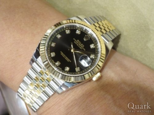 K様 いつもクォークをご利用頂き、誠にありがとう御座います。ディープシーをお持ち頂いておりますので、使い分けとしてお選び頂いたデイトジャストは最適だと思います。高級感のあるデイトジャストのデザインに10Pダイヤが入る事で、より一層ゴージャスに腕元を演出してくれますね。スーツ姿にとても決まって格好良いです!末永くご愛用頂ける様、私もサポートさせて頂きますので、ご相談等が御座いましたら、お気軽に私までご連絡ください。ご遠方になりますが、名古屋にお越しの際は、お気軽に遊びにいらして下さい。青サブが気になると仰っていましたが、次回ご検討の際も是非私までご連絡下さいませ。今後とも末永いお付き合いの程、宜しくお願い申し上げます。