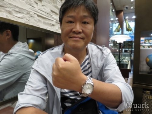 クォークさんへ訪れたところ、デイトジャストの10Pダイヤの時計が丁度あり、他の時計とも見比べた結果、この黒文字盤のデイトジャストにしました。今日は下見のつもりだったんだけどな(笑)門脇さんに上手に乗せられました!でも、良かったです!!大事にしますね。ありがとう。