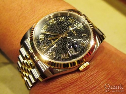 M様 この度はクォーク仙台店をご利用くださいまして誠にありがとうございます。光の当たり方で浮き上がるロレックスのロゴ、輝くイエローゴールドが更に高級感をアピールしてくれますね。さりげなくおしゃれを演出してくれるのでファッションのアクセントとしても素敵だと存じます。サイズやデザインもM様にピッタリで大変お似合いでございます。珍しいダイヤルだからこその魅力も楽しんで頂ける自慢の一本になる事と存じます。これからは新しいロレックスライフをお楽しみ頂けましたら幸いでございます。いつまでもご愛用いただけますよう、定期的なメンテナンスをお勧め致します。また、お時計に関しましてご不明点等ございましたらお気軽にお申し付けくださいませ。店頭にてサイズ調整、ブレス洗浄を承っておりますので近くにお越しの際は是非お店にも遊びにきてください。もちろん、ご家族お揃いでも大歓迎でございます(笑)!!今後とも末長いお付き合いの程宜しくお願い申し上げます。