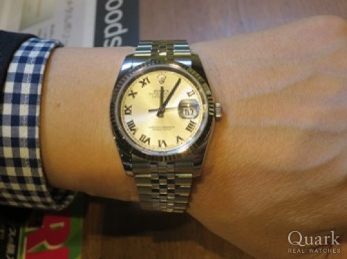 W様 いつもクォーク神戸店をご利用頂きまして、誠に有難う御座います。ロレックスの定番モデルである「デイトジャスト」は収まりの良いケースサイズと、豊富なダイヤルが年代問わず人気のモデルです。また今回お求め頂きましたコンビモデルは、華やかさがあり腕元のアクセントになりますので、所有されているRef.116234Gとはまた違った魅力があるかと存じます。今後はシーンによって、使い分けを楽しみながらご愛用頂ければ幸いです。また、ブレスレットの洗浄も店頭にてサービスで行っておりますので、いつでもお気軽にお立ち寄り下さいませ。今後ともクォーク神戸店を宜しくお願い致します。 クォーク神戸店 川田