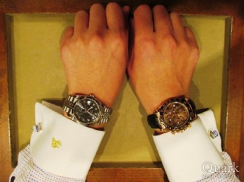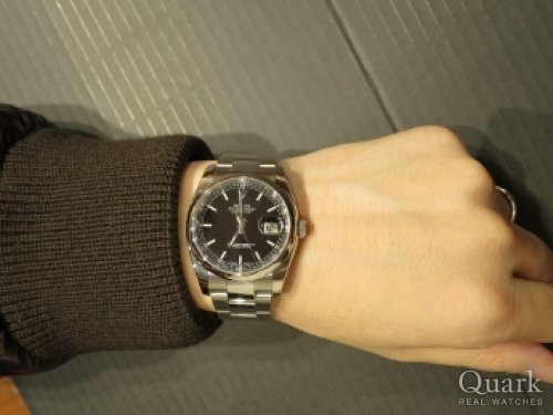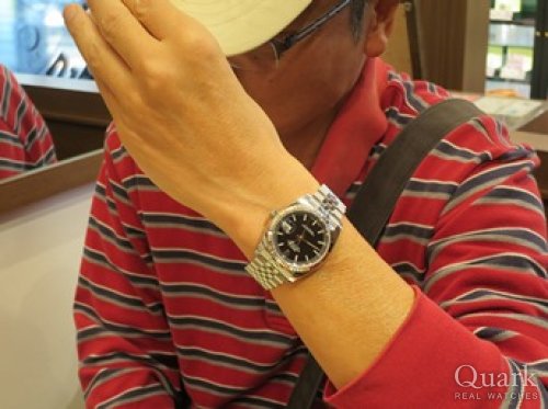 S様 いつもクォーク仙台店をご利用くださいまして誠にありがとうございます。朝の個人的な会話から、まさかの流れに、今でも驚きを隠せないです(笑)。デイトナも、もちろん文句無しの格好良さですが、DATEJUSTもまた、おしゃれなS様にピッタリでございますね。シャツからみえる、ブラックコンピューターダイヤルに天然ダイヤモンドの輝き、素敵でございます。これからS様のコレクション達と一緒にたくさんご愛用頂けましたら嬉しいです。時計とは『運命』とよく言われますが、前回同様、さすがS様は何か見えない『チカラ』をお持ちなのでしょうね。S様とのお話は私も毎回楽しみにしており、大変勉強になります。楽しすぎて思わずご迷惑をかけてしまい反省しております(笑)。こちらの1本をきっかけに、ドレス系ならではのロレックスライフも満喫して頂けましたら幸いでございます。気になる点等ございましたら高橋までお申し付けくださいませ。今後とも末長いお付き合いの程宜しくお願い致します。