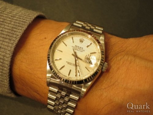 昔からコンビモデルが好きで、白文字盤とも相性が良く、気に入りました。また、36mmのサイズ感もとても良く、購入を決意しました。