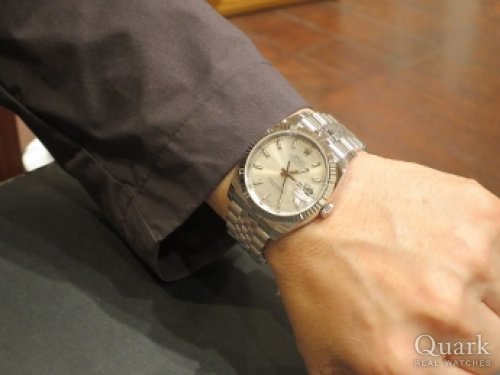 F様 いつもクォーク仙台店をご利用くださいまして誠にありがとうございます。また、記念のお時計ご購入のお手伝いをさせた頂きました事、大変光栄でございます。現行モデルにはないシャープなデザインが魅力のイエローゴールド・デイトジャスト。レザーベルトもアンティーク調でございますので相性抜群でございますね。このお時計をモチベーションにして頂けるとのことで、お仕事頑張ってください! 以前ご購入くださいましたお時計と一緒に、しっかりと対応させて頂きますので、末長いお付き合いの程、宜しくお願い致します。