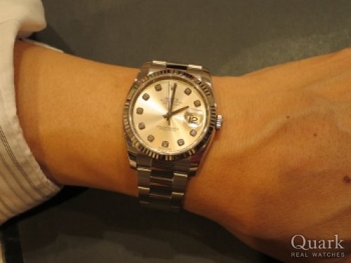 O様 この度は、クォーク梅田店ご来店並びにご利用頂き誠に有難うございます。3連ブレスは珍しく、ジュビリーブレスにないしっかりとした存在感があり、3連ブレスのDATEJUSTを好まれる方も少なくありません。以前お持ちのお時計から非常に良いモデルアップだと思います。またのバージョンアップお待ちしております(笑)ブレスの調整や洗浄お承っておりますのでお近くお越しの際は是非お立ち寄り下さいませ。