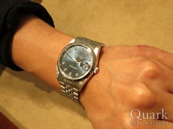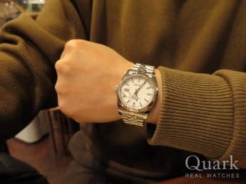DATE JUSTシルバー文字盤も持っていたけれども、白文字盤の爽やかさと日付の奇数日の赤色、シルバーには無いところが気に入った。エクスプローラーIIの白文字盤を下取りしてもらい購入、今回も松原さんにお世話になりました!で!!大浦さんには負けました(笑)。