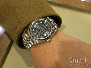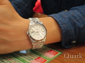 F様 この度はクォーク神戸店をご利用頂きまして誠に有難うございます。デイトジャストのなかでも滅多に入荷しないホワイトシェル(白蝶貝)は、ワンランク上のタイプです。シェルは、光の加減によって表情が変わりますので時間を見るのが楽しくなりますよ!!是非、末永くご愛用頂ければ幸いでございます。三宮にお立ち寄りの際は、お店まで遊びにいらして下さい。今後ともクォーク神戸店を宜しくお願い致します。