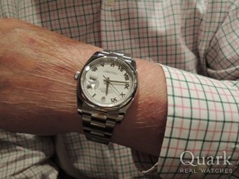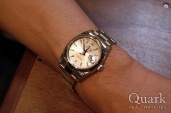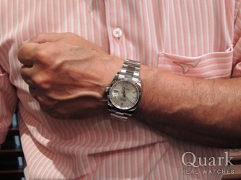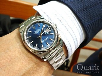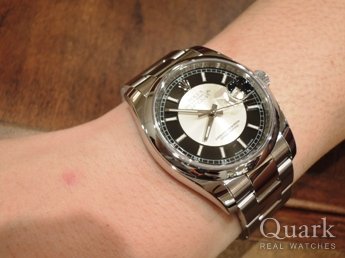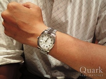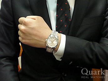 ブルーかツートンカラーのダイヤルかで迷っていたが、実際に見てツートンカラーのモデルに決めました。正規店など色々見て回ったが、クォークは12年保証が有るのでクォークで購入をしました。