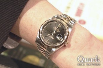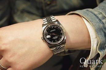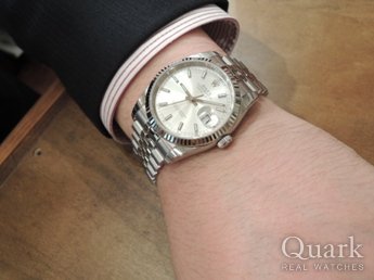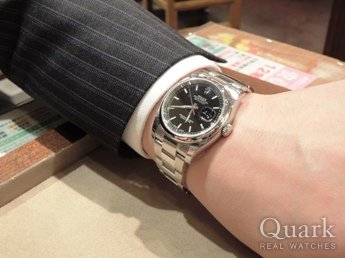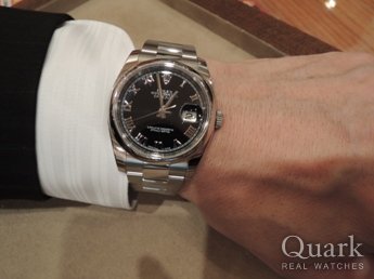 グレーローマかブラックローまで迷ったけど、試着したらブラックローマが良かった。当初ボーイズサイズのデイトジャストを購入予定でしたが、メンズサイズかレディースサイズしか店頭に無く、メンズサイズのデイトジャストを試着したら思いの他かっこよかったので、購入を決めました!!