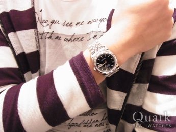 当初はピンク文字盤で検討していましたが、 実際に試着してみるとブラック文字盤の方が 相性が良かったので購入を決めました!