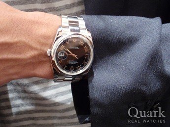職場の先輩がロレックスを愛用していたのを見て、自分も欲しくなりました。 仕事で日付機能が必要だった事もありますが、ローマ数字でシンプルな光沢感のあるデザインが 購入の決め手です。