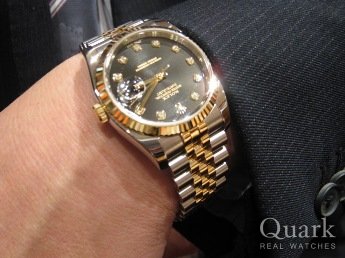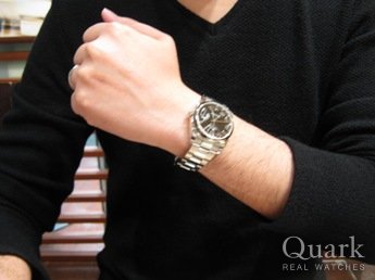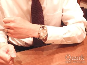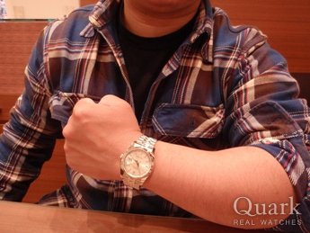以前にクォーク池袋店を利用して以来、頻繁にホームページをチェックさせて頂いております。 今回は仕事メインで使えるデイトジャストのホワイトローマダイヤルが欲しくて探していました。 その時、たまたま渋谷店ブログに掲載されていたグレーローマダイヤルのデイトジャストが目に止まり、ステンレスとの色合いがマッチした綺麗な雰囲気がとても気に入り購入を決めました。 ブレスレットとベゼルのデザインが落ち着いている点や、ケースのサイズ感、程良い重量感はスーツに合わせて使うにあたりとても満足できる1本です。 また機会がありましたらぜひともお願いします。