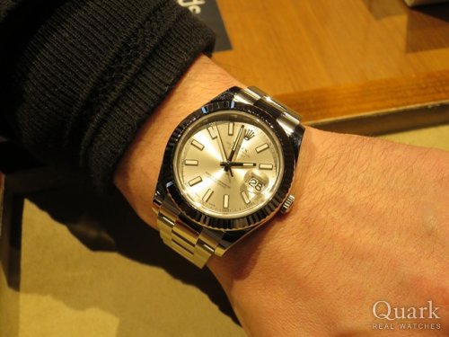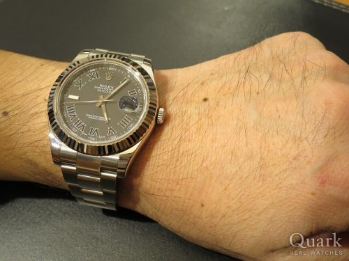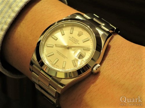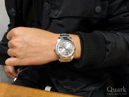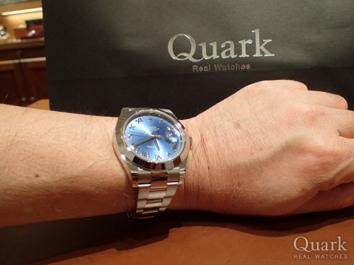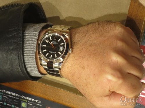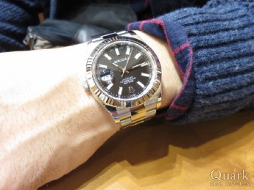 T様 この度はクォーク仙台店をご利用くださいまして誠にありがとうございます。ご購入当日は直接ご案内できず大変失礼致しました。まさかの大きいサイズへのご決断、2018年初の私の驚きでした(笑)。最愛の奥様からのアドバイスもあっての一本とお伺いしておりますので、間違いなく自慢の相棒となりますね!41mmケース径は使いやすく、シンプルなデザインは場所も選ばずご愛用いただけることと存じます。お写真からも男らしさが感じられてカッコイイですよ★記念すべき一本となるDATEJUSTII、喜んで頂けて私も嬉しいです。DATEJUSTIIがT様のお傍で元気に活躍してくれますよう、これからもしっかり努めて参りますので、ご愛用いただく上で気になる点などございましたらお気軽にお申し付けくださいませ。店頭にてブレス洗浄、サイズ調整を無料で承っておりますので、ぜひまたご夫婦でお店に遊びにきてください♪DATEJUSTIIをさりげなく使いこなすT様とお会い出来る日を楽しみにしております!!それでは今後とも末永いお付き合いのほどよろしくお願い申し上げます。