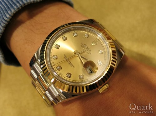 T様 日頃より私共クォーク仙台店をご利用頂き、誠に有難う御座います。お忙しい中、何度もご来店を賜り、重ねて御礼申し上げます。今回も色々なモデルをご案内しT様を悩ませてしまいました。申し訳御座いません。この度ご購入頂きましたDATEJUST II は、T様が求めていた条件にピッタリのモデルでしたね。「シーンに合わせて時計を着けかえる」、オシャレで、且つとっても羨ましいです。この度のDATEJUST II は普段使い用なので、現在お持ちのロレックスの出番が少なくなるかもしれませんが、傷等は気にせずガンガンご使用頂き、DATEJUST II の使い勝手の良さを楽しんでください。これからも、オススメのモデルがありましたらご紹介させて頂きたく思います。店内の商品も随時入れ替わりますので、お時間が御座いましたら是非お立ち寄りください。今後とも、末長いお付き合いの程、どうぞ、宜しくお願い致します。 クォーク仙台店 麻生