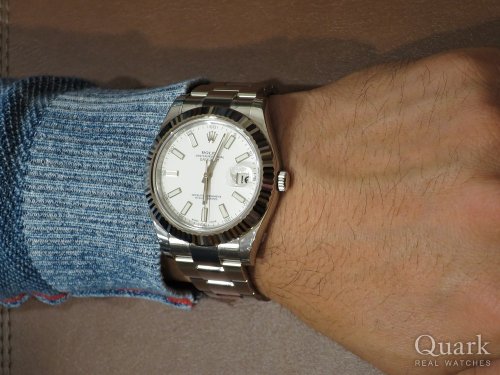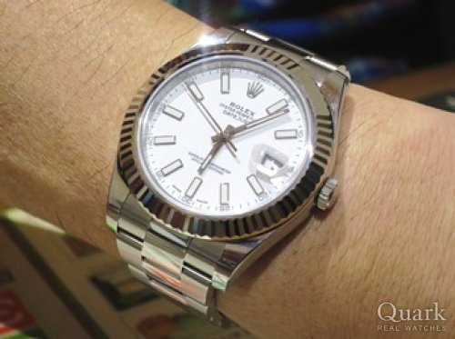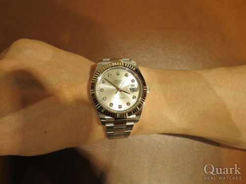 T様 この度はクォーク梅田店をご利用頂き、誠にありがとうございます。今回お選び頂きましたデイトジャストII Ref.116334 ホワイトダイヤルはバーインデックスが純白のダイヤルカラーに見事にマッチし、上品かつ爽やかな1本です。オン・オフ問わずご愛用頂けるデザインだけでなく、高い視認性も魅力です。またデイトジャストⅡは今年生産終了となり、流通量も少なくなっている中でタイミング良く、この度のモデルがご案内が出来たこと、嬉しく思います。又定期的な洗浄は無料で可能ですので、大阪へお越しの際は是非お立ち寄り下さいませ。今後ともクォークを何卒宜しくお願い致します。  クォーク梅田店 川田