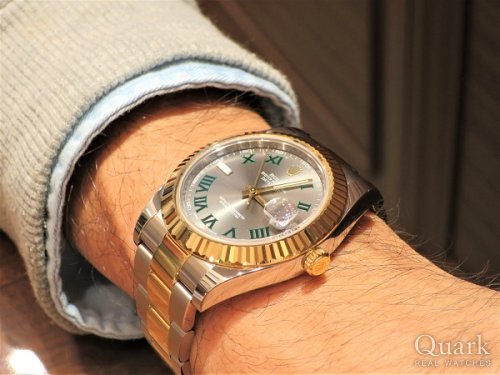 K様 この度はクォーク名古屋店をご利用頂き、誠にありがとう御座います。ご遠方から、何度がお越し頂き、本当にありがとう御座いました。ご購入頂いたデイトジャストIIは、シンプルながらホワイトゴールドベゼルの輝きで高級感溢れるデザインとなります。存在感のあるサイズは、視認性にも優れており、実用性も抜群です!これから末永くご愛用頂ければ幸いです。また素敵なお写真まで頂き、本当にありがとう御座いました!K様にサイズもバッチリお似合いですね。お使い頂く中で、ご相談等が御座いましたら、お気軽に私までご連絡下さいませ。今後とも末長いお付き合いの程、宜しくお願い致します。