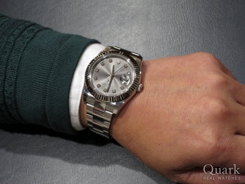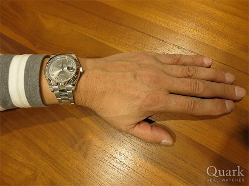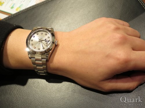 E様 この度はロレックス専門店クォーク広島店にてデイトジャストII(Ref.116300)をお買い求め頂きまして誠に有難うございました。またご購入頂く迄に、商品手配の関係もあり、何度もご足労お掛けして申し訳ございませんでした。お買い求め頂いたデイトジャストIIは、E様とお話をさせて頂く中で、最もご要望にあったモデルだと感じております。ケース径が41ミリとなりますので、ダイヤルも見易く、堅牢なデザインも魅力ですね。是非、末永くご愛用頂けますと幸いです。またお使い頂く中でご不明な点やご用命の際には、お気軽にお申し付け下さいませ。今後とも宜しくお願い致します。