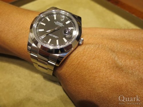 サブマリーナーと悩みましたがデザインや着けた感じでデイトジャストIIに決めました。お客さんを選ばないスタッフさんの対応も良かったです。