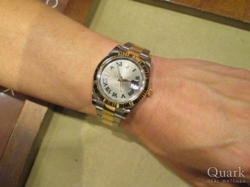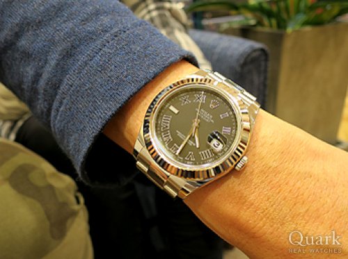 F様 日頃よりご愛顧を賜わり、お礼申し上げます。この度お選び頂きました、デイトジャストII・コンビモデルは、18KYGとダイヤの豪華さに加え、3列のブレスレットがスポーティさも兼ね揃えておりますので、様々なシーンでご愛用頂けるかと思います。36ミリのデイトジャストでは味わえない存在感も魅力ですね。F様のたくましい腕にとてもよくお似合いでした。素敵です!下取もF様が今まで大切にご使用されていたからこそ、ご提示出来た金額です。素晴らしいお時計をお譲り頂き、ありがとうございました!アフターメンテナンス等、しっかりサポートさせて頂きますので、ご不明な点やサイズのお直し等が御座いましたら、お気軽にご連絡下さい。今後ともクォーク神戸店を宜しくお願い致します。 クォーク神戸店 川田