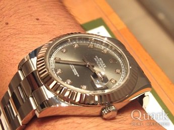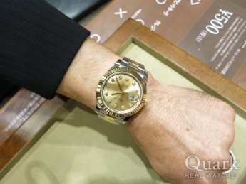 M様 この度は、私共クォーク仙台店をご利用頂き、誠に有難う御座いました。また、お忙しい中、何度も足をお運び頂き、重ねて御礼申し上げます。M様にお選び頂きました、デイトジャストII・コンビモデルは、18KYGとダイヤの豪華さやステイタスに加え、3列のブレスレットがスポーティさも兼ね揃えておりますので、様々なシーンでご使用頂けるかと思います。腕につけて頂くと、36ミリのデイトジャストでは味わえない存在感も魅力ですね。ご紹介くださいましたS様にお会いできなかった事がとても残念ですが、宜しくお伝えくださいますよう、お願い致します。お時間が御座いましたら、是非、ご一緒にお立ち寄りください。楽しみにしております。アフターメンテナンス等、しっかりサポートさせて頂きますので、ご不明な点やサイズのお直し等が御座いましたら、お気軽にご連絡下さい。今後とも、どうぞ、宜しくお願い致します。 クォーク仙台店 麻生